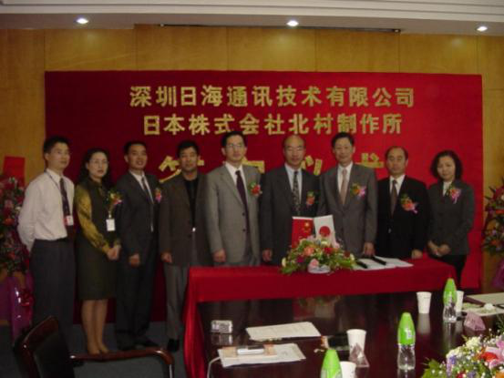 2004年4月13日,公司与日本株式会社北村制作所就户外一体化机房的设计、生产、销售和服务在Z6.COM-尊龙集团公司智能签订了合作协议,共同合资组建深圳北村Z6.COM-尊龙集团公司机房技术有限公司,并举行了隆重的签字仪式。公司周展宏董事长、王文生总裁、杨飞董事、机房事业部负责人孟庆光和日本北村制作所北村泰作董事长、永井正幸常务董事等出席了签字仪式。